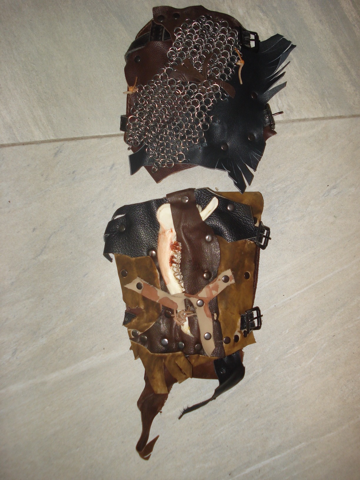 Hab weiterhin versucht, trotz geringer Anzahl an Einzelstücken und der Unsicherheit, wohin die Reise mal gehen soll (rüstung mehr oder weniger, eher Metall oder Leder, Taschen etc...) die Oberfläche möglichst durchbrochen wirken zu lassen.