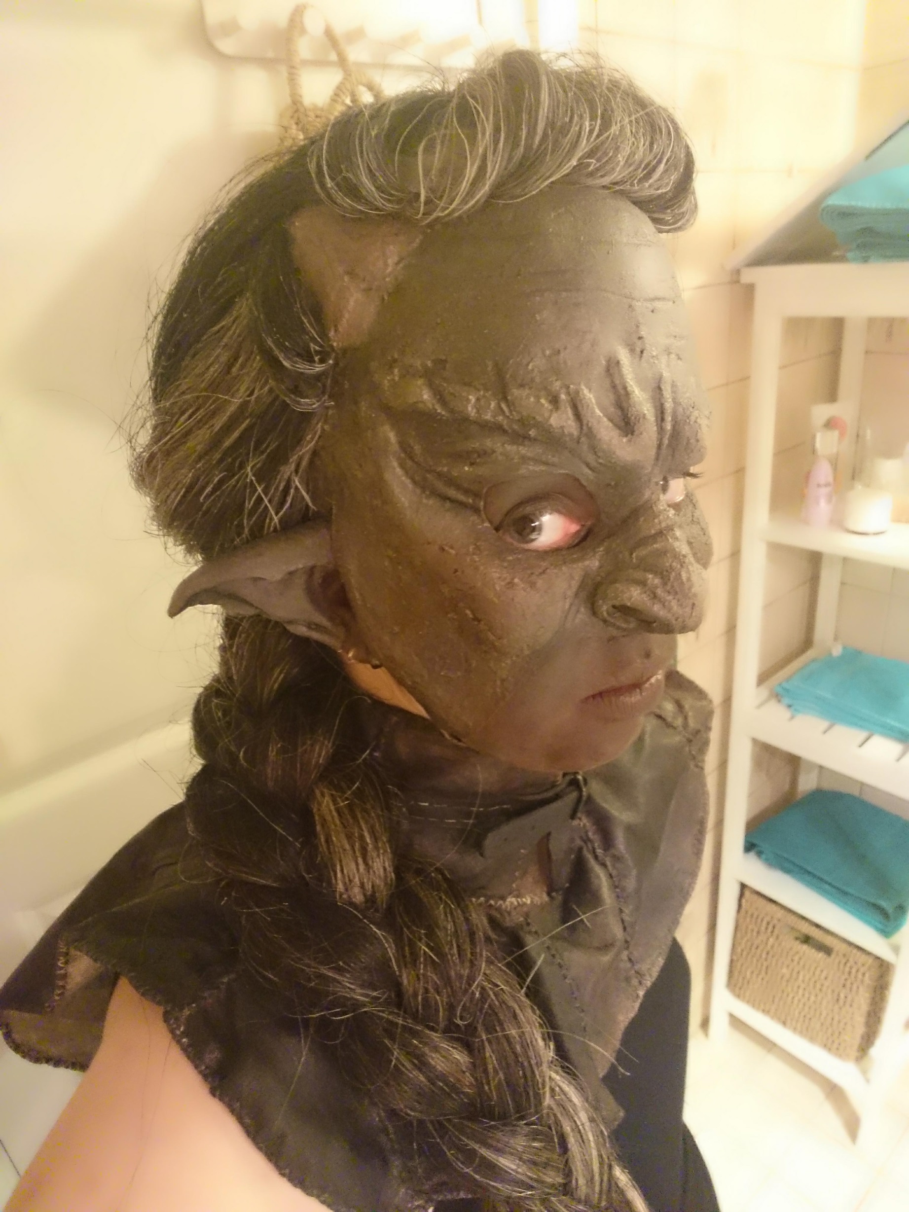 Einer der Gründe für die Frisur war aber, dass ich in echt auch ziemlich dickes langes Haar habe und das irgendiwe unter der Maske verbauen wollte, ohne einen abnormen Hinterkopf zu haben.