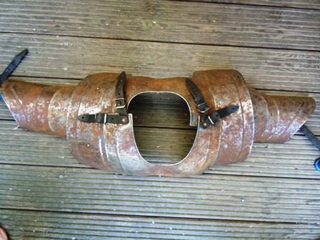 Hab mir diese Schulterplatten bei Anderswelt vor ungefähr einem Jahr gekauft abgeschmirgelt und mit Hilfe von Wasser und Salz Rosten lassen.