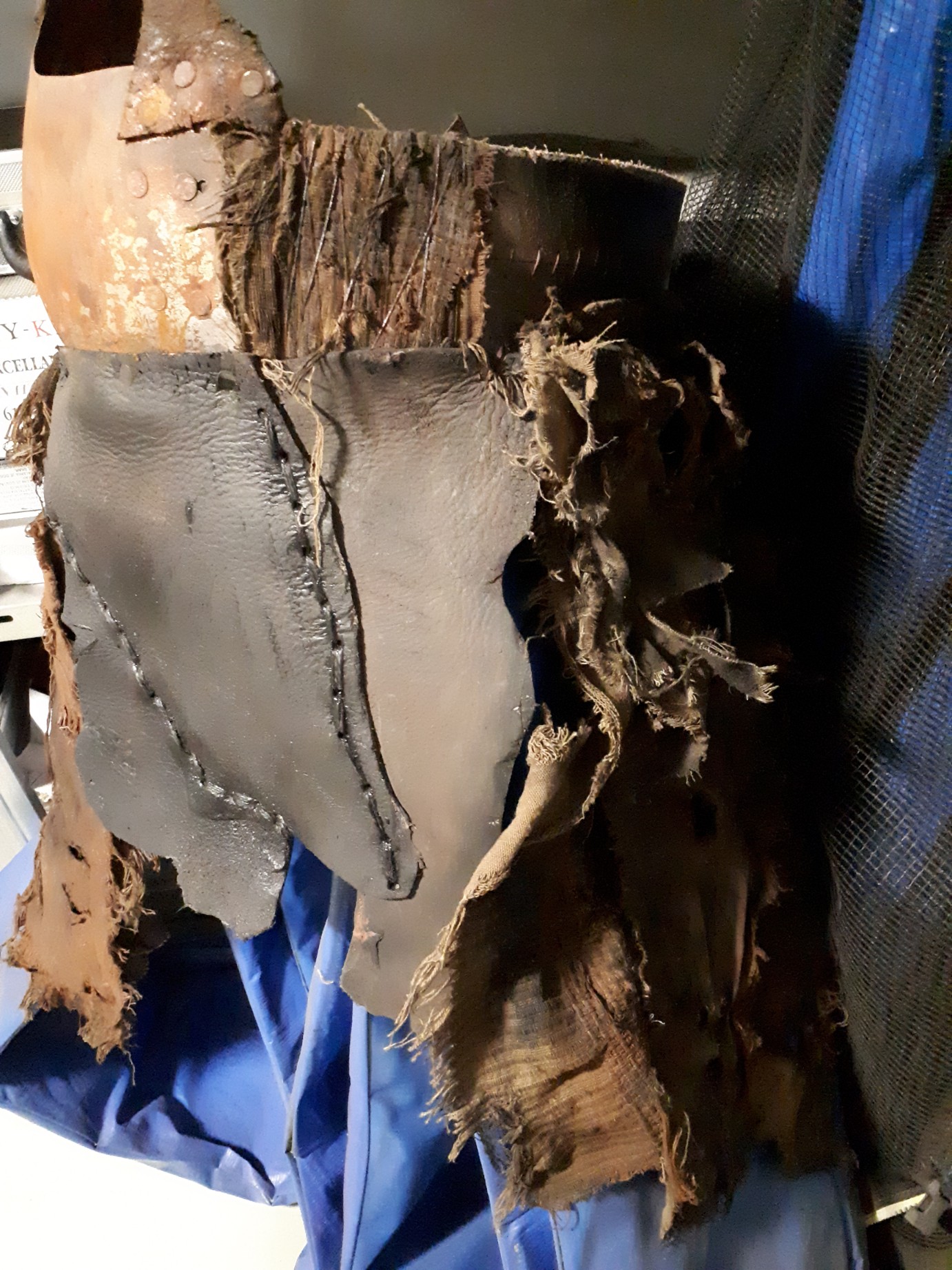 Ich hab vor, einen baugleichen Schurz wie vorne auch hinten anzubringen. An den Seiten werd ich Lederstücke festmachen, um noch ein wenig it/ot Schutz zu bekommen. Außerdem "verwischt" das die Kontur der Beine glaub ich ganz gut: