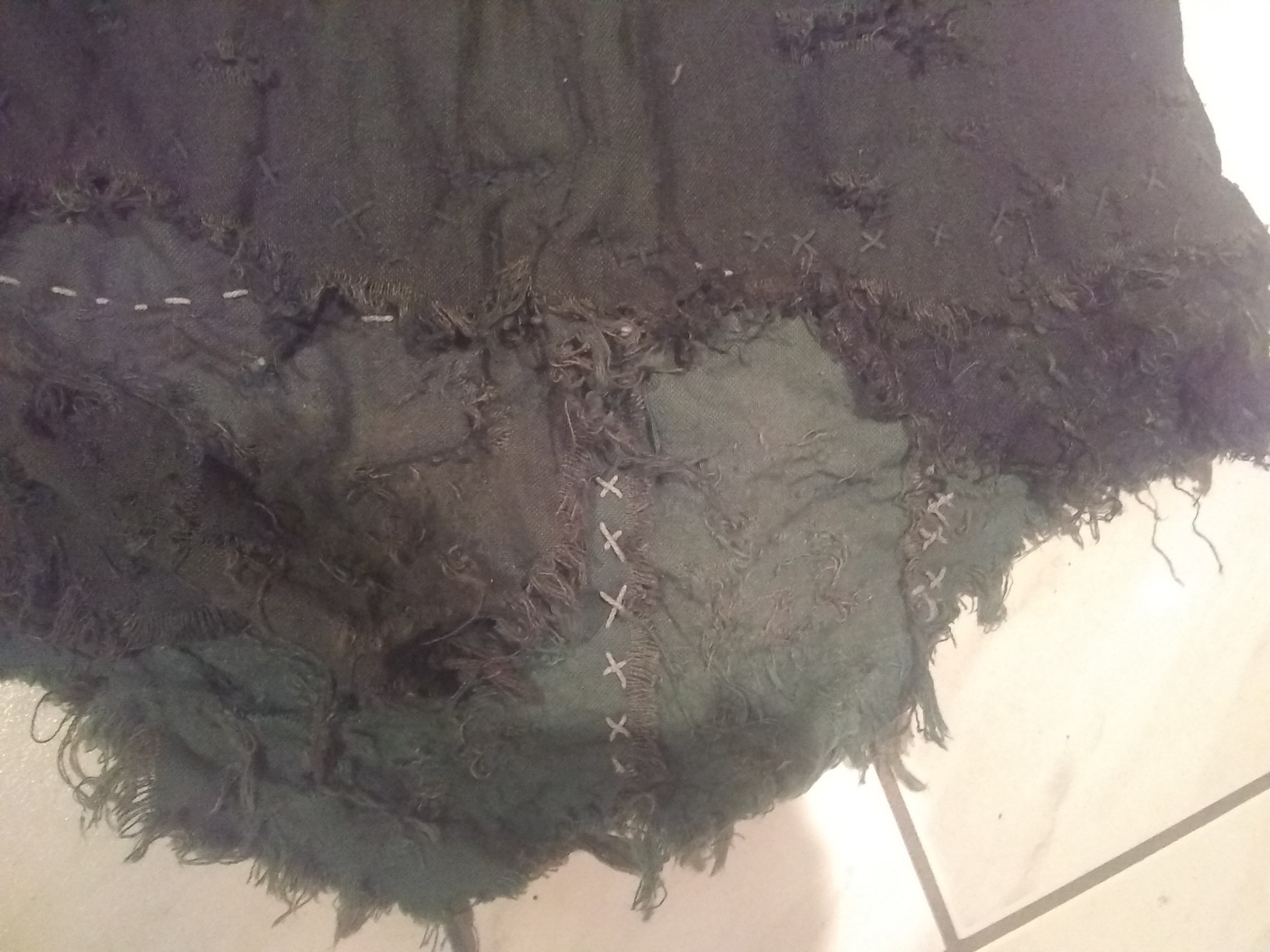 Die Tunika würde unten etwas verlängert und dann etwas verschlissen. Unten sind ein paar Details hierzu.