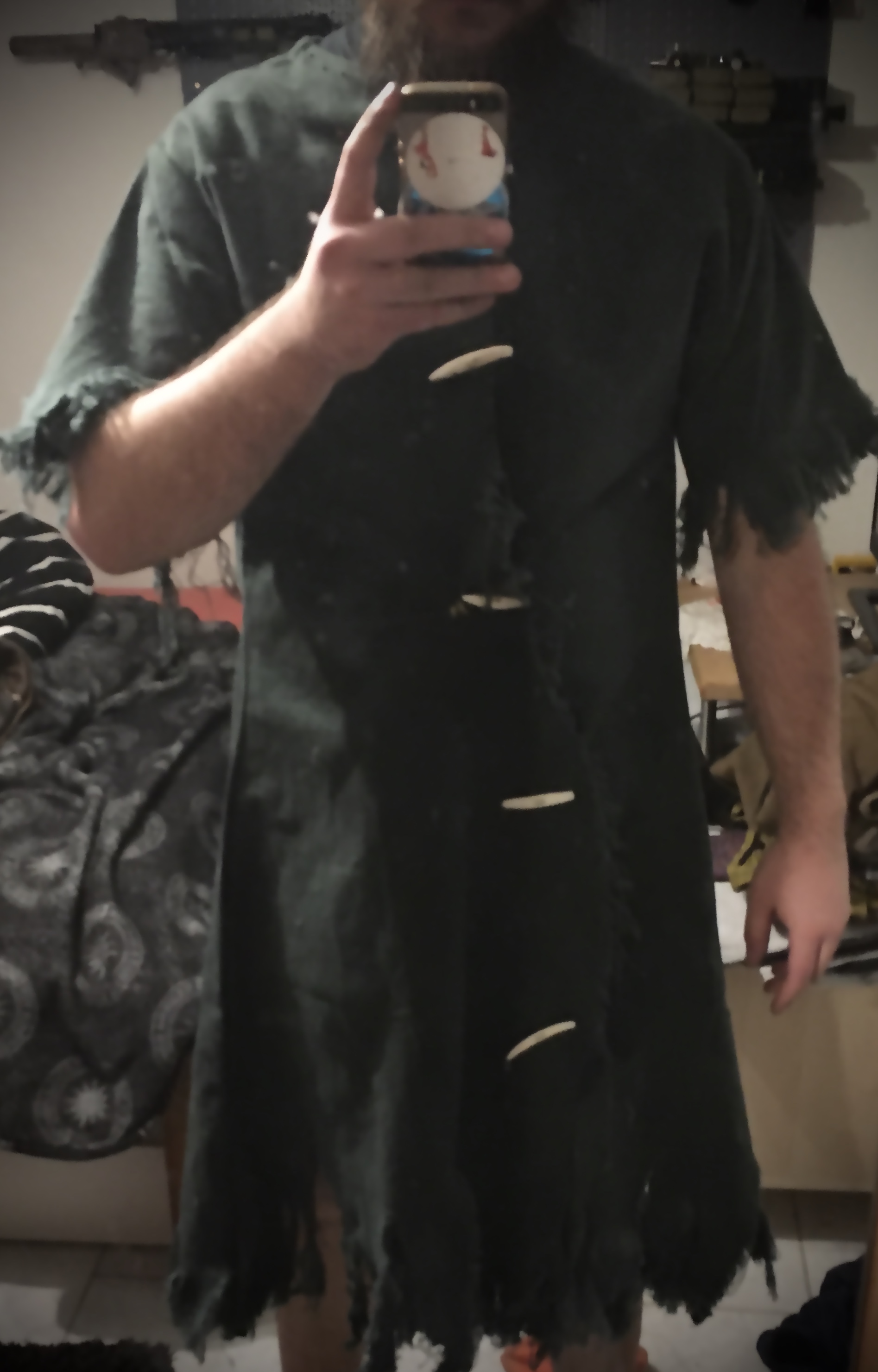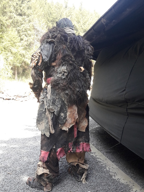 mein Plan wäre jetzt gewesen das ich das Wildscheinfell auf den rücken basteln würde (im prinzip als regenschutz)