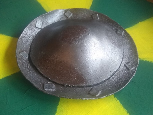 Wenn ich Rost darstellen will dann bemale ich die Stellen mit einem Gemisch aus der metallfarbe und braun,Rot, schwarz. Darüber Bürste ich dann nochmal mit braun. Auf dem Schildbuckel bieten sich Da die Stellen an die da etwas Rauer sind. So hast du auch ne gute optische Grundlage für Rost. Zum bemalen klappt sehr gut Stoffmalfarbe. Die dann später noch versiegelt wird