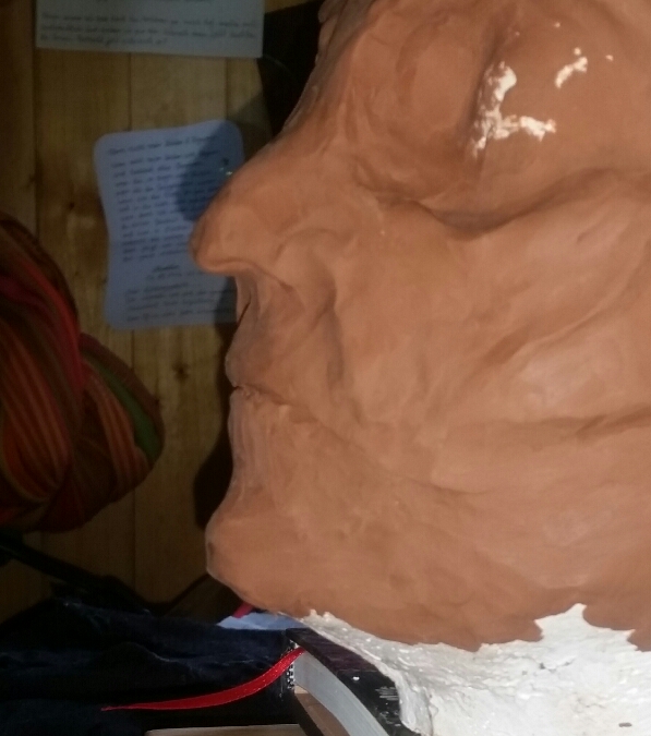 Ich denke wenn du beide Nasolabialfalten gleichmäßig tief modellierst wird sich gehörig was an der Optik tun. Achte darauf das der/die Ton/Modeliermasse in dem "'Dreieck" schön dünn ist. Für später genug Grip im Gesicht.