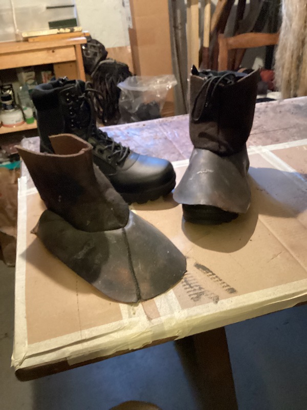 Ich hab schon einige solcher Schuhabtarnung gesehen. Sie scheinen also Leitfaden konform zu sein. Ich finde sie allerdings Recht hässlich. Willst du die Schuhe noch für was anderes benutzten? Oder nur für den Ork? Sonst denk vllt drüber nach ein extra paar für den Ork zu haben. Dann könntest du mit dünnen Drahtnägeln die Kanten des Leders in die Sohle nageln. Dann bekommt das ganze wieder mehr Form. Um das ganze leichter formbar zu machen, könntest du das Leder auch teilen und dann zusammen puzzlen. Die Teile dann an den Rändern zusammen nähen. Das verleiht dem ganzen dann einen zusammengenähten Touch und wirkt wieder nach Schuh