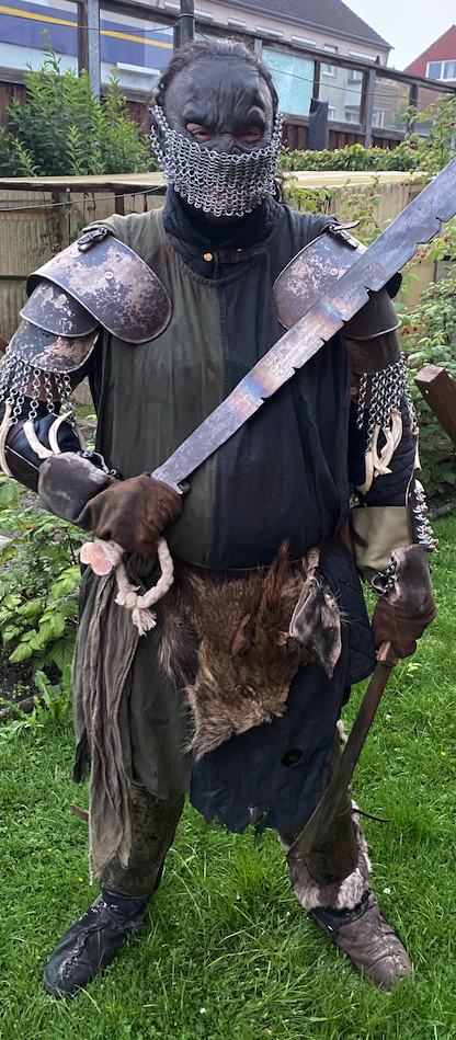 Kettenmaske gehört NICHT dazu und natürlich nicht mit Stahlwaffen