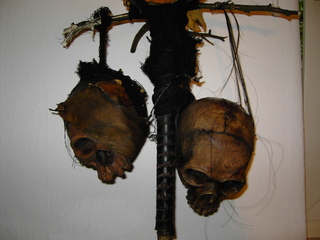 ich werd um die berührungspunkte der schädel noch lederfetzen wickeln und antäuschen,das die schädel von verschnürungen zusammengehalten werden.