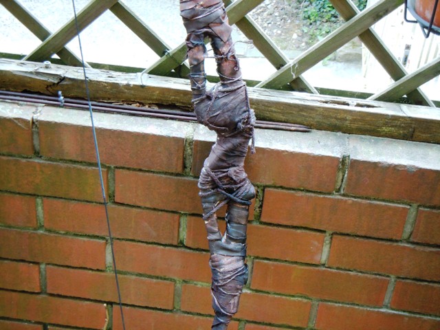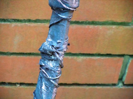 Schwarze tagesdecke von Ikea Streifen abreißen ca 2-3 cm breit drumwickeln und dann nochmal mit Garn fest umwickeln und nen paar Knoten machen. Hab ich so gemacht sieht gut aus und hält bombenfest.