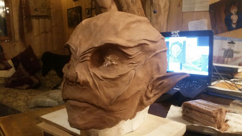 Wenn ich eine Vollmaske mache, modelliere ich den gesamten Kopf. Der Hinterkopf bietet ja auch Platz für Details. Und das abformen erleichtert es auch. Dann hast du auch später weniger Fett in der Form. Hier halt nur nicht Zentimeter dick.