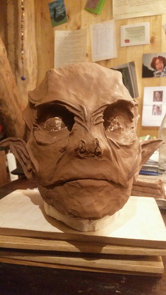 Ich hab halt meinen Gipskopf und unten dran ist nicht viel Hals, was dazu führt, dass ich ihn dauernd in der Hand halte, um unten was zu modellieren.