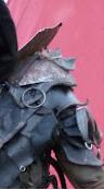 Das ist meine Linke Schulter: Leder als unterstes, dann Metallkragen umgedreht, und 'nen Unterkiefer drauf...