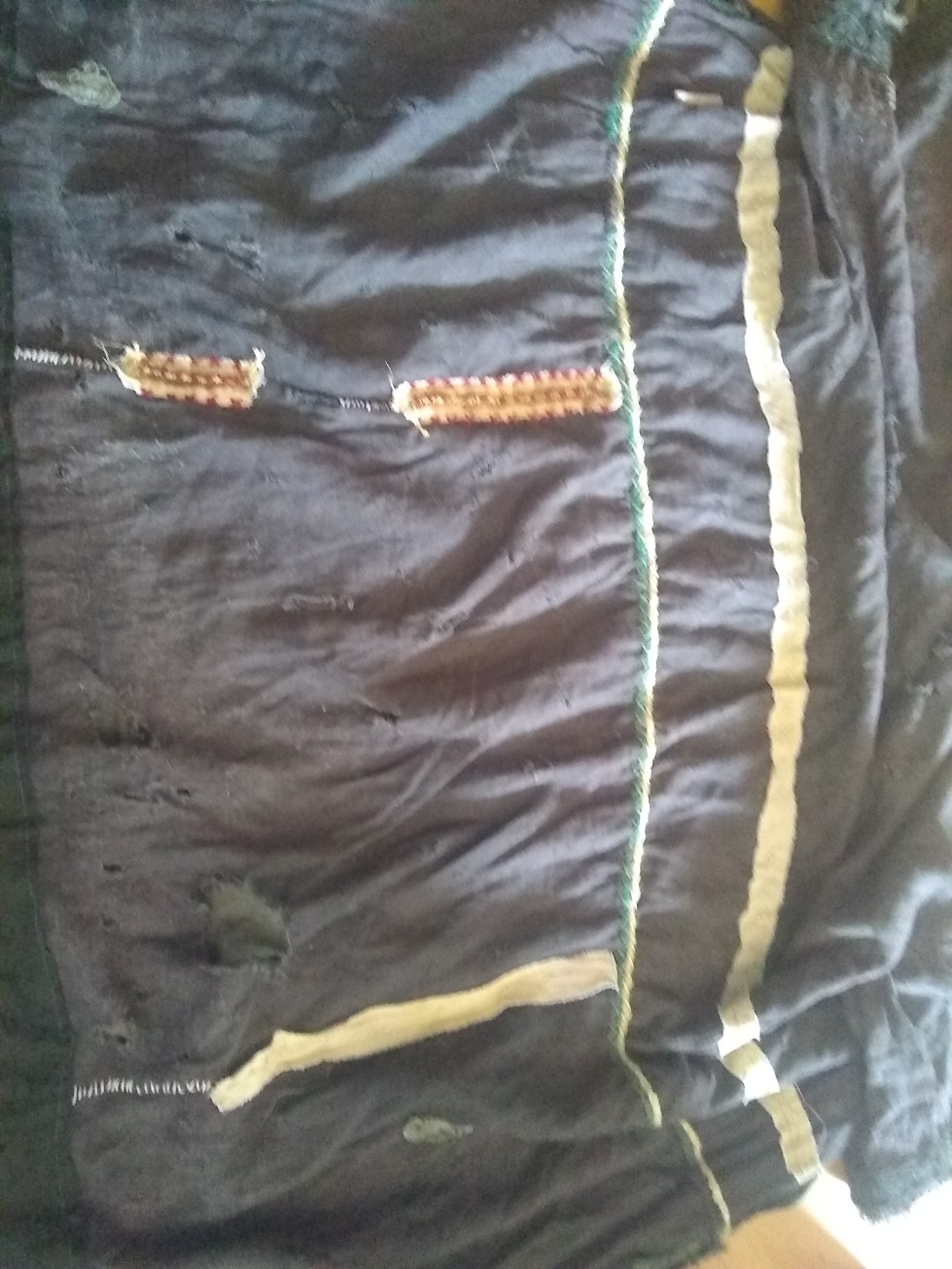 Ich hab bei meinem Mantel angefangen ein wenig mehr auf die Optik Wert zu legen und hoffe daß er nun so langsam mehr nach "Wikinger" aussieht. Da ich leider keine Webborte gefunden habe, die für mich dafür entschieden selbst etwas passendes zu weben, was natürlich nicht funktioniert hat. Daher habe ich eine "Fake" Variante gestickt (ist aufwendig wie die Sau und ich muss noch zwei große Stücke machen).