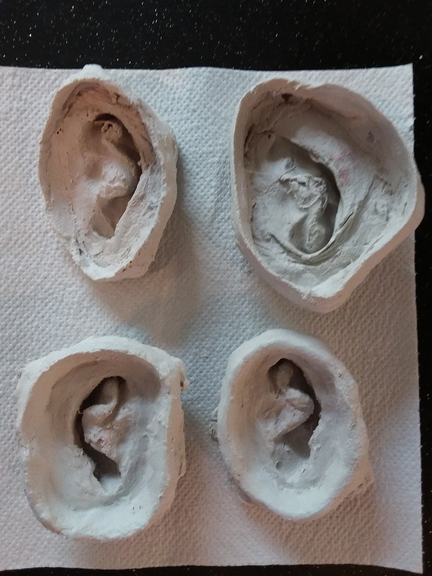 Wir haben heute tatsächlich die Ohren gegipst. War sehr lustig :D das sind die Abdrücke.