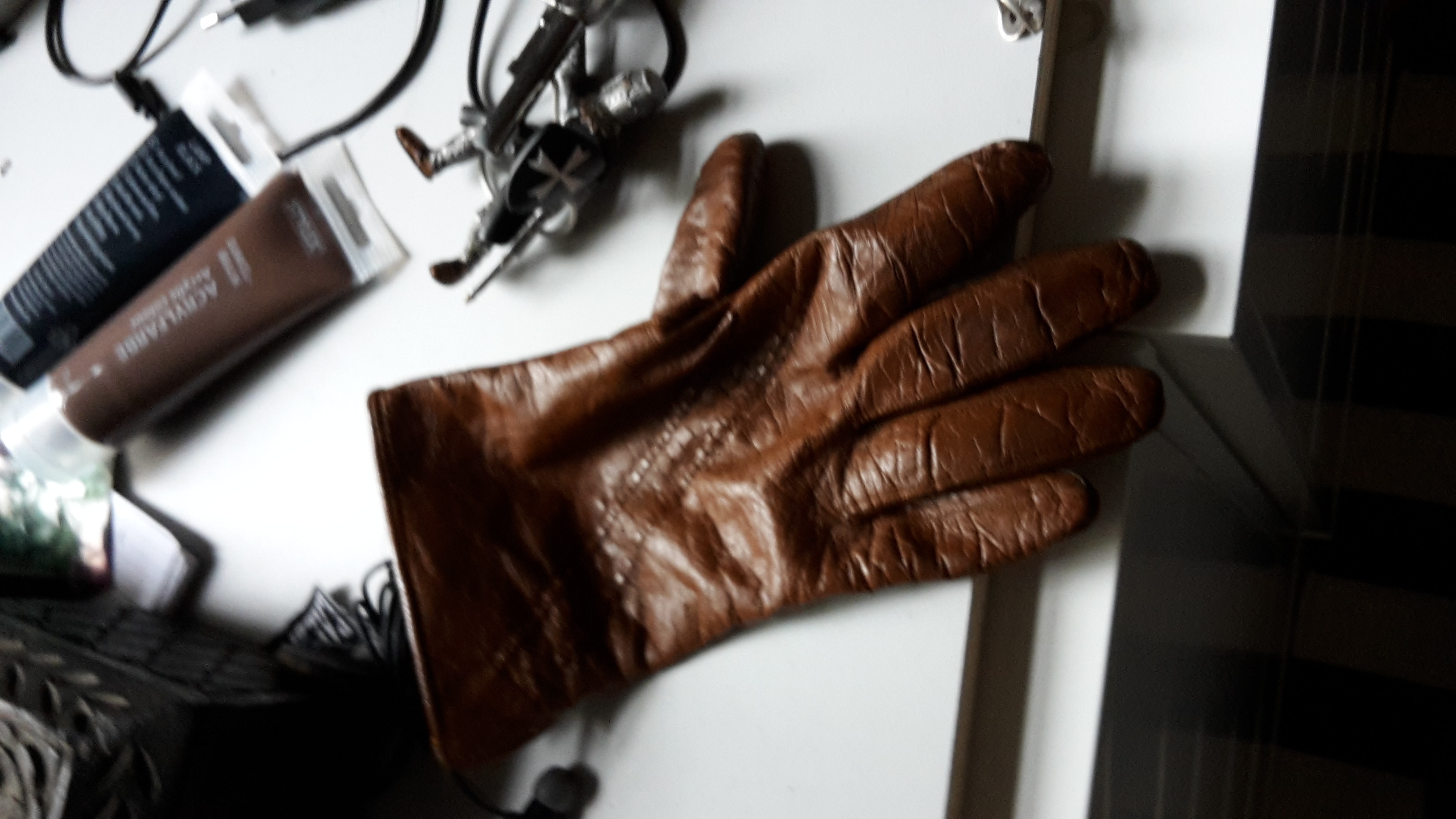Stinknormale Lederhandschuhe für 2 € vom Flohmarkt. Davor hatte ich immer Stoffhandschuhe mit abgeschnittenen Kuppeln die haben aber immer mega gefusselt.