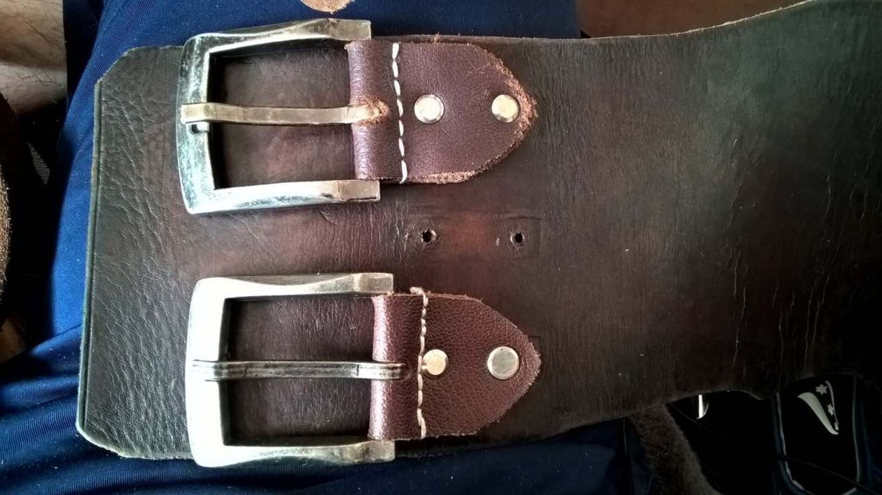 I bought the same biker leather belt, I cut it again, tied the first layer of leather and varnished