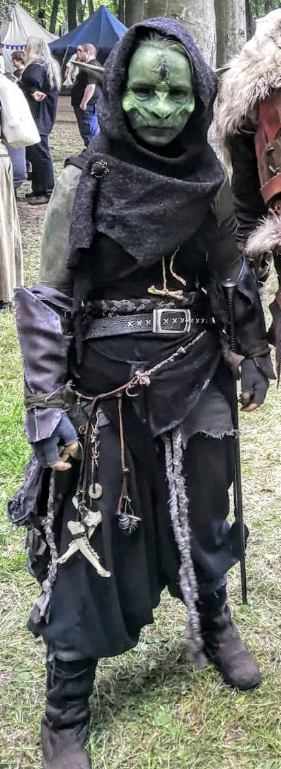 -einen ledernen Gugel, um insbesondere den Frontteil des Kostüms noch ein wenig "zerfetzter" aussehen zu lassen