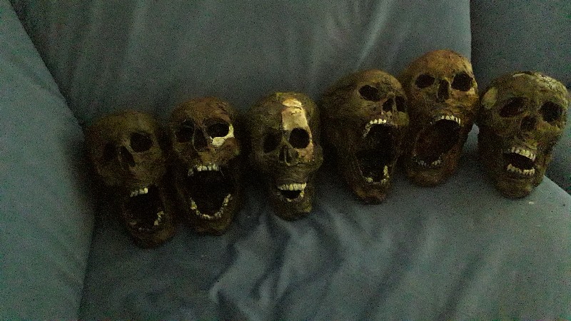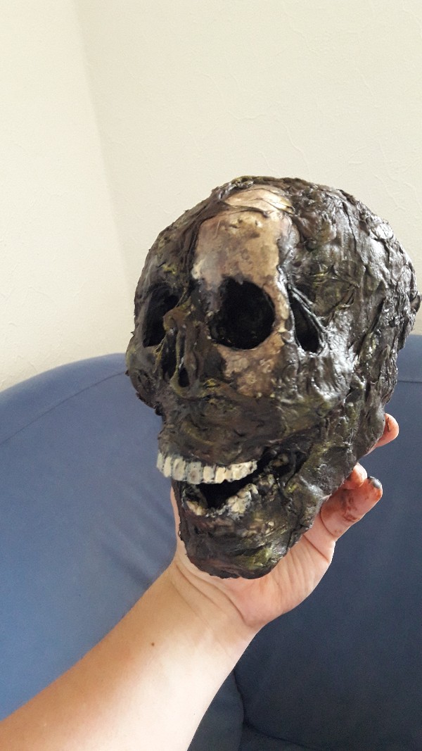 Hab zwei Schädel die beim Schäumen verhunzt sind kurzerhand mit Watte und Latex umgewandelt