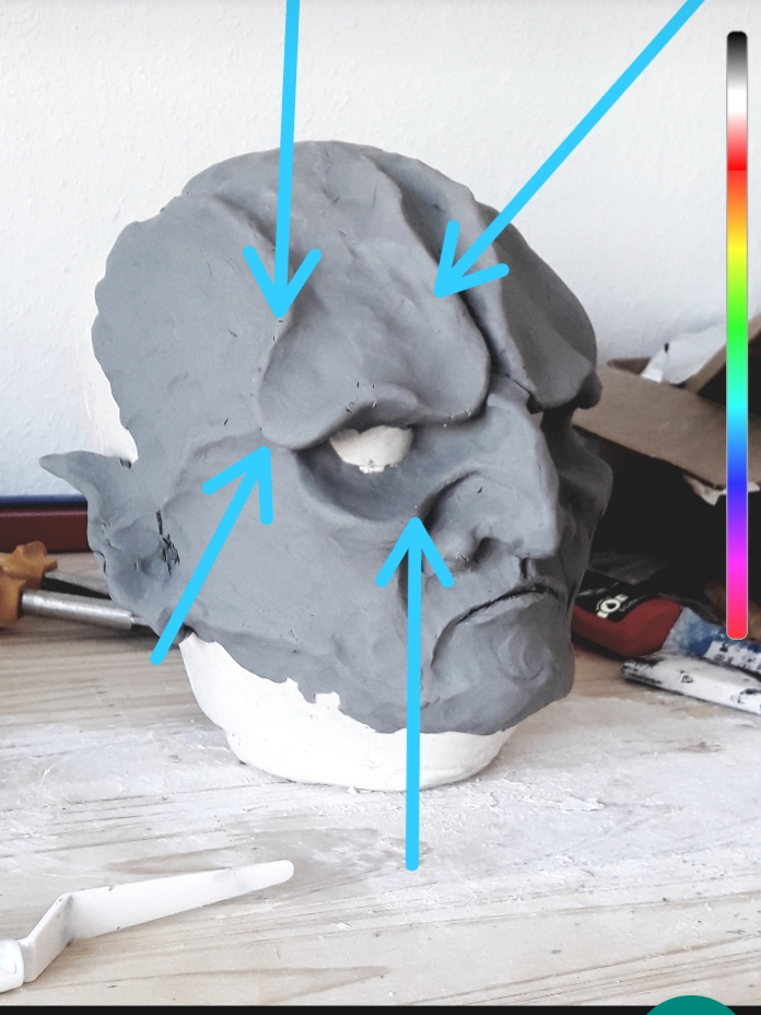 Nase und Mund brauchen noch Arbeit und ich glaube es ist zu viel Materiel, besonders am Jochbein.