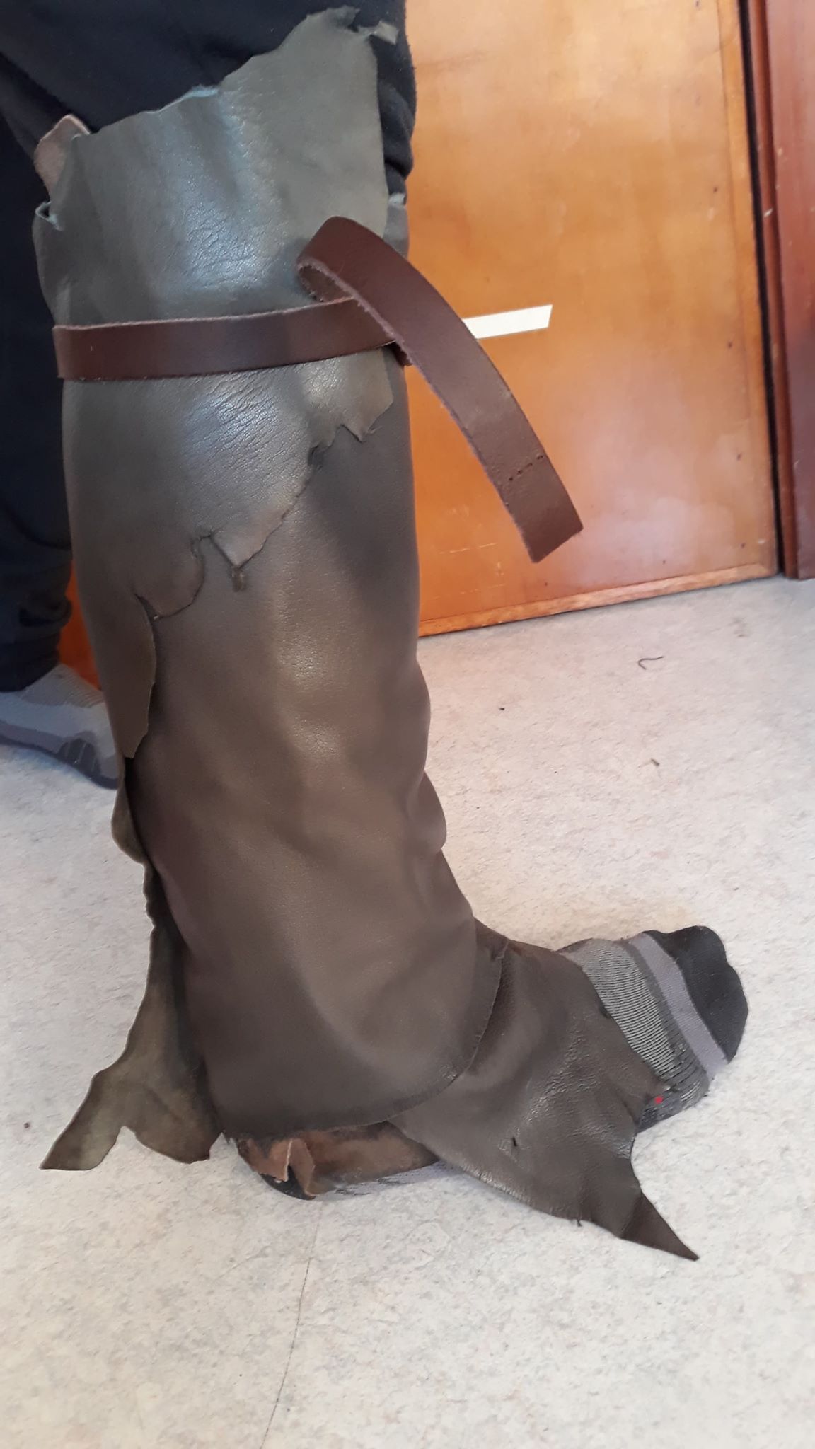 i'll dirty the leather with black spray polish and brown and blood color acrylic with water