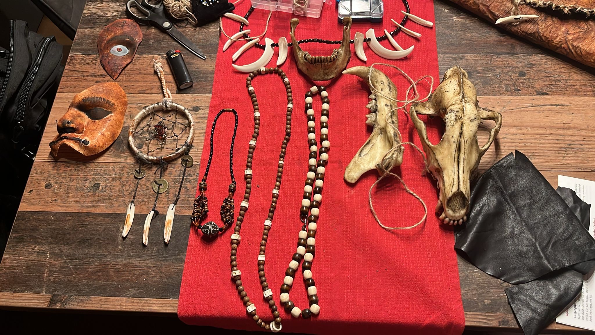 mit etwas Struktur. Diese Perlenkette könntest du zb über die Brust spannen. Generell könnten dem Mantel noch Nähte und Applikationen gut tun. Hast du einen Clan oder Trupp mit einem Symbol? Hast du diverse Götter/Ahnen/Geister die du anbetest und die spezielle Zeichen haben die du vllt auf Leser anbringen kannst und das Leder könntest du dann wiederum festnähen