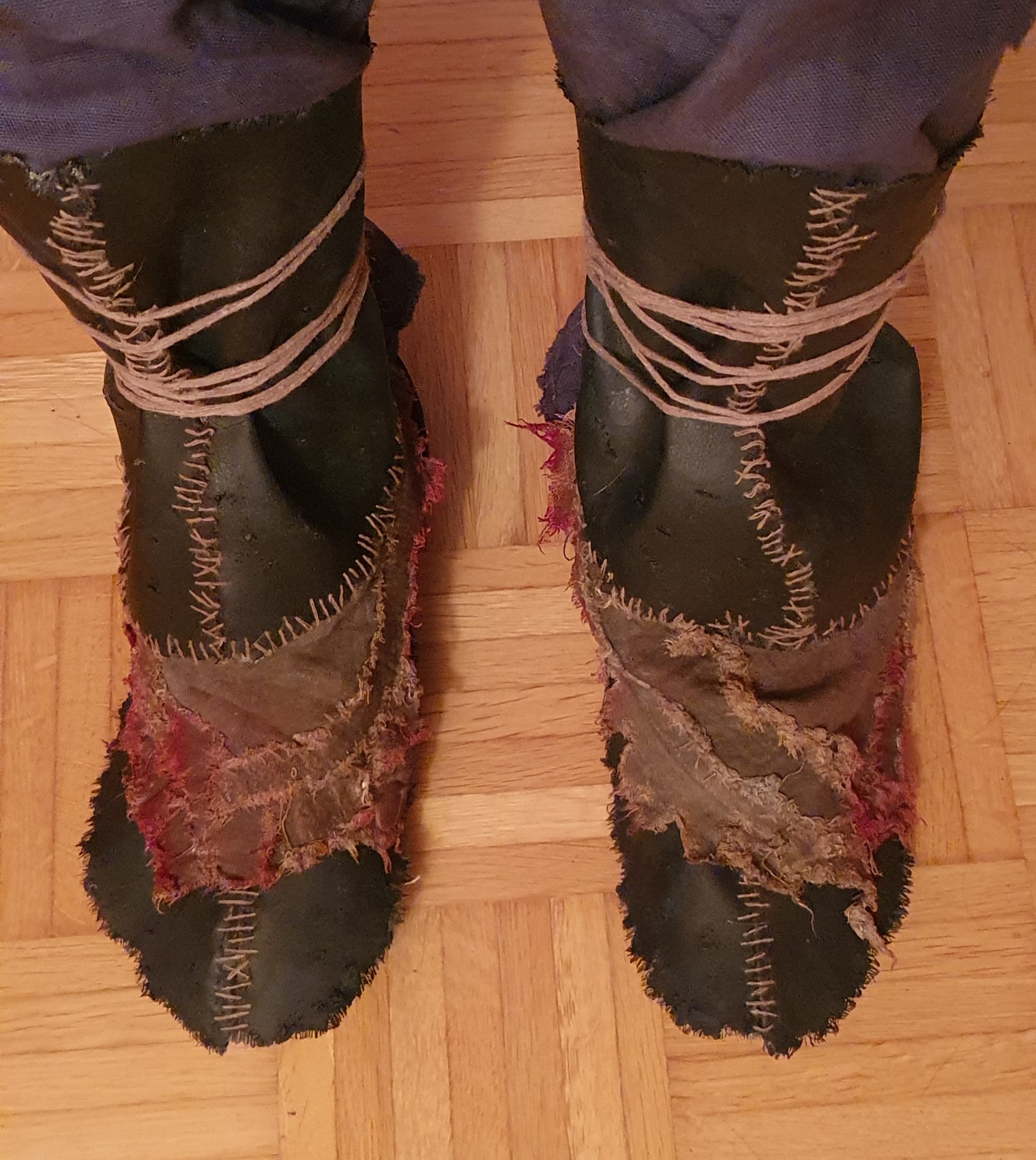 Teil 2: Eine Abdeckung, die nachträglich um die Hose und das Bein gebunden wird.