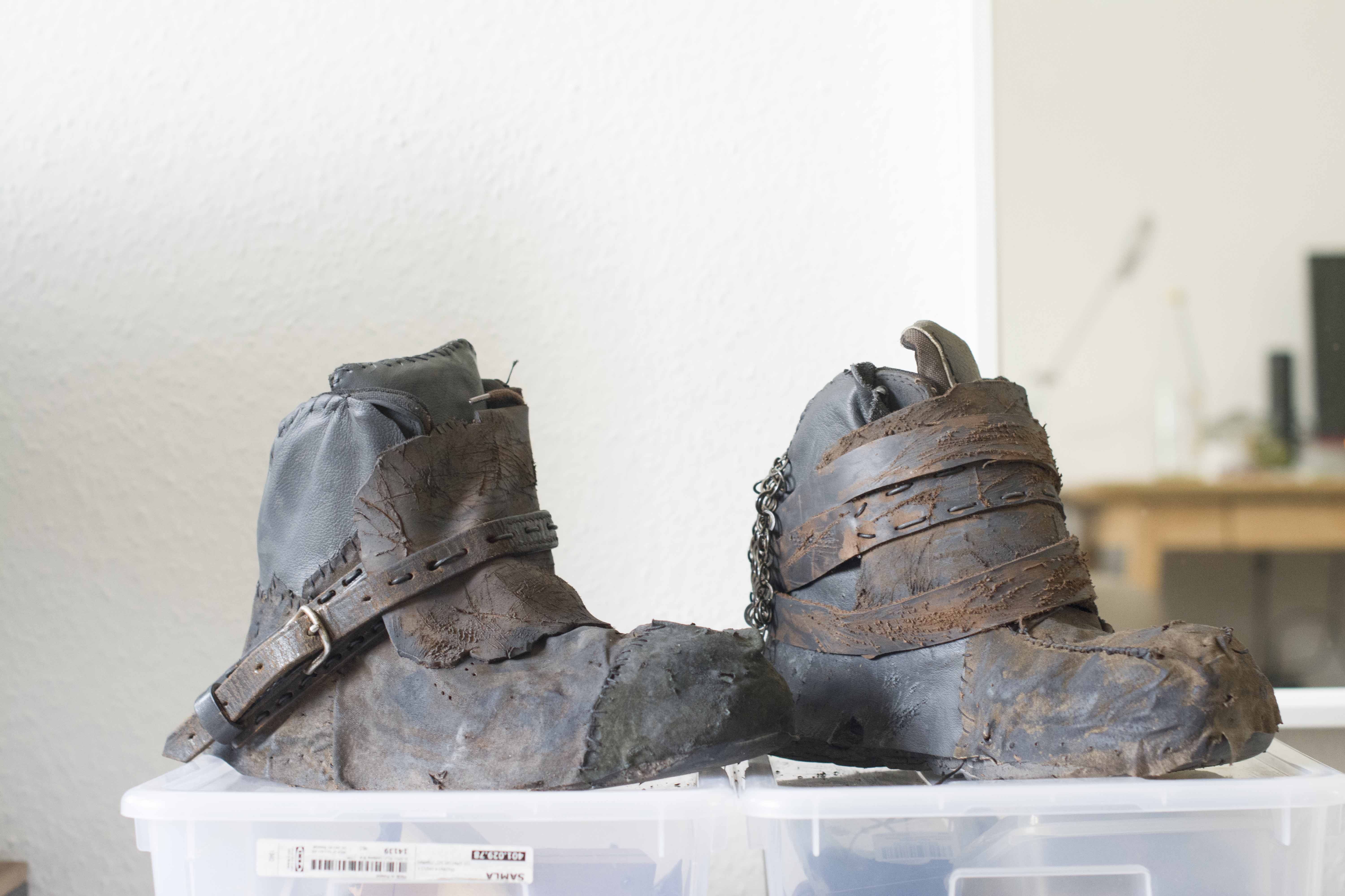 Da ich die Gamaschen jetzt gegen die neuen Beinschienen getauscht habe, brauchte ich noch passende Schuhe. Deswegen habe ich mich die Tage mal meine alten Arbeitsschuhe genommen und ein wenig aufgemotzt.