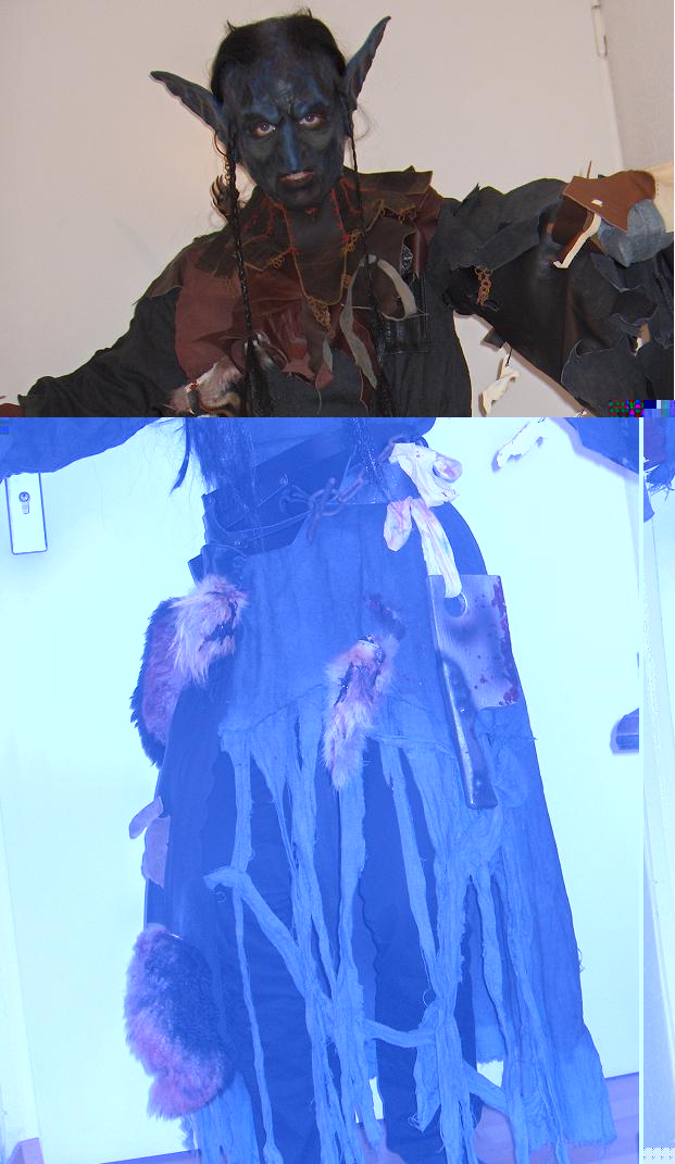 Bei den Portraits muss ich noch zu dem Bisonrattenfell sagen, dass ich einige Kieferknochen etc hinten draufgenäht hab und jetzt auch das Ding schön mit Blutscratchpaste besudelt habe. Sieht also nicht so zum kuscheln aus, wie der auf dem Foto anmutet.