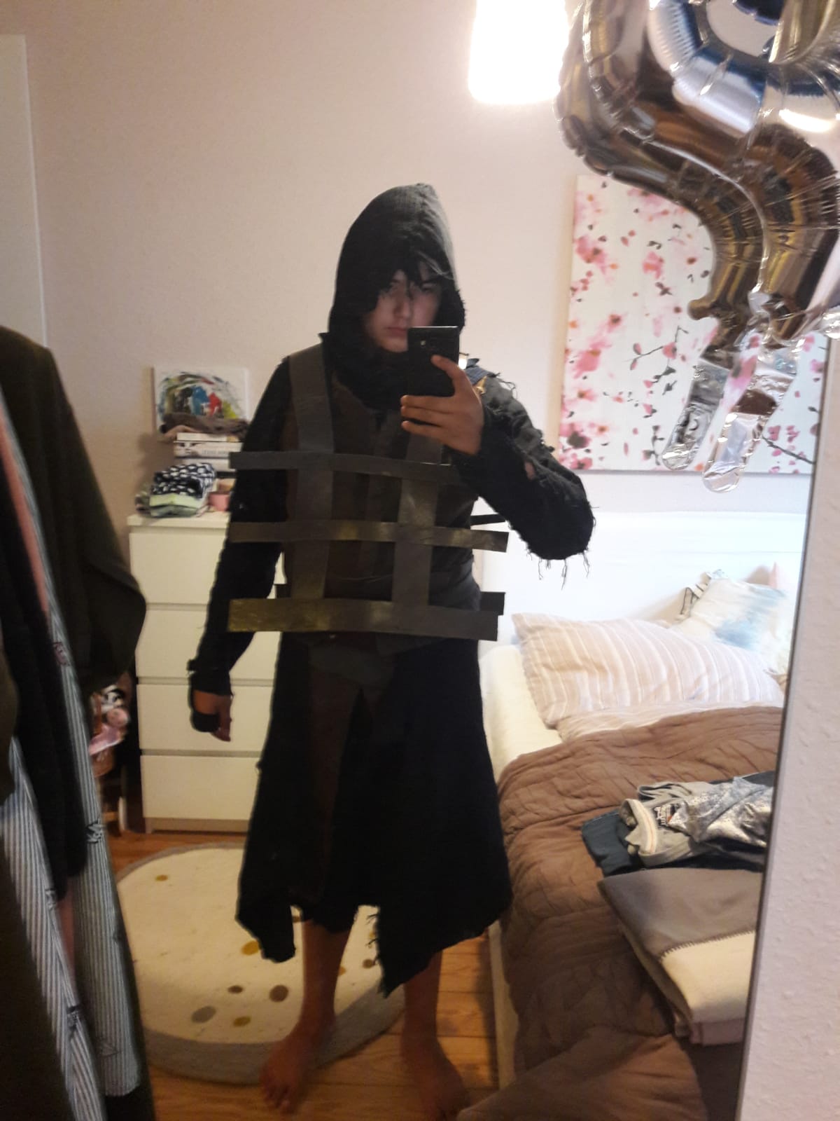 Ich möchte den Mantel noch dunkler kriegen bin da aber noch am überlegen ob ich ihn einfach komplett Schwarz Färbe oder erstmal mit viel verdünnter Ackrylfarbe drüber geh.