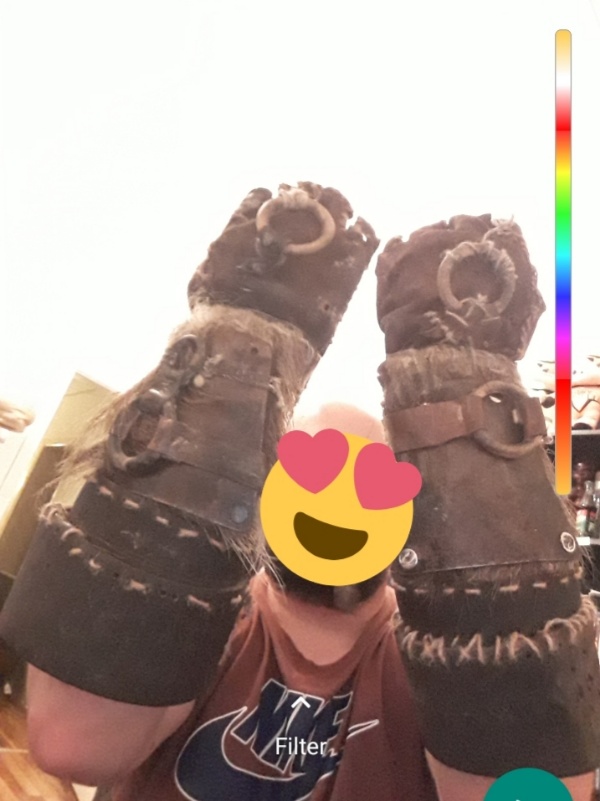 Hier geht's aber mal um meine Handschuhe. In dem ganzen Trensen, Pferderiemen Konvolut war ein schöner breiter Riemen mit dem ich meine Handschuhe schön verlängert habe. Zuerst ein Bild der alten Länge. Dann die verlängerte Version