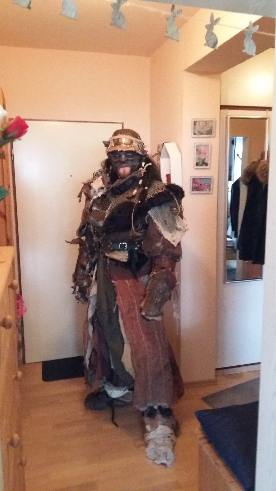 Ich habe habe meiner Maske einen neuen Anstrich verpasst, Augenbrauen hinzugefügt und Haare und Bart zu Zöpfen gebunden.