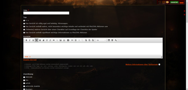 In unserem Orgabereich haben wir jetzt ein Gerüchteformular, mit dem wir für euch eben jene Gerüchte erstellen können. Und praktischerweise findet ihr eben jene Gerüchte dann in eurem orklager-Profil bei eurer OHL-Anmeldung. Und bei dem lustigen Gerüchtespiel könnt ihr auch mitmachen - ist vermutlich Einigen auch bekannt