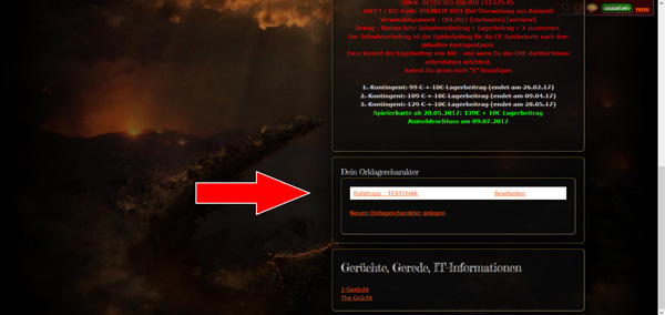 Vielleicht schaut ihr nochmal in eure Anmeldung bzw. euren Charakterbogen