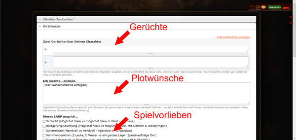 Natürlich: Ein Wunschzettel ist das nicht und wir können euch natürlich nicht jeden Spielwunsch erfüllen - aber alle Angaben die ihr macht, helfen uns ggf dabei etwaige Plots so zu gestalten, dass sie "zufällig" für euch passen könnten.