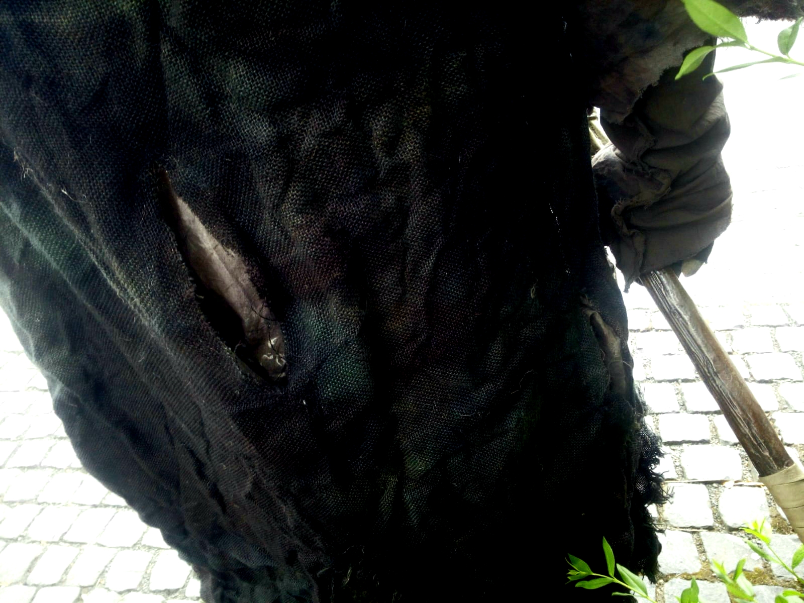 Kein Gürtel etc, da der rupfen Mantel ebenfalls Taschen hat, u. A. hinten auf Gürtelhöhe