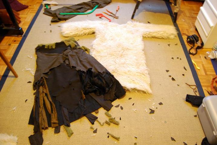 Aus dem Flokati hab ich mir nen Oberteil genäht. Das muss natürlich noch bearbeitet werden.