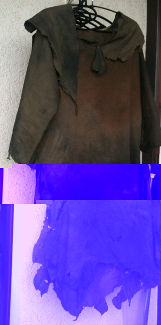 brauner u schwarzer beize und am ende zusammengenäht. der "umhang" ist aus verranztem