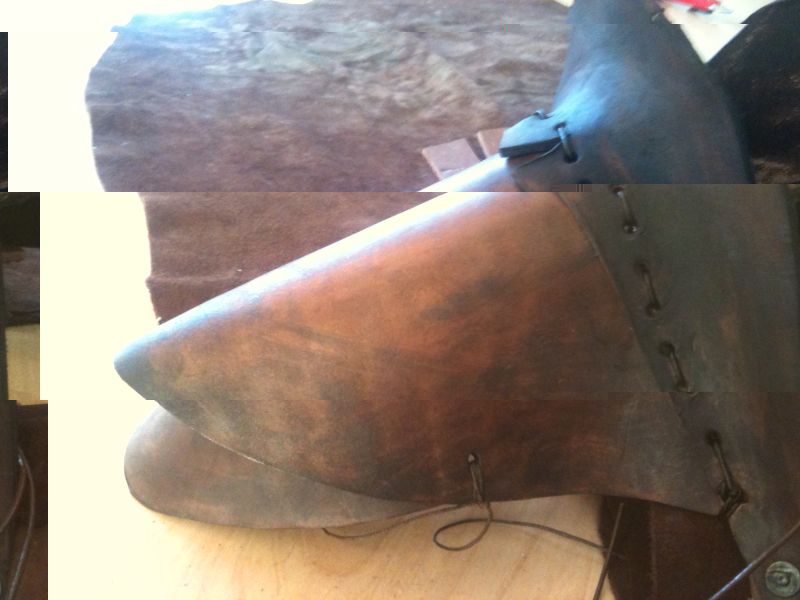 die schultern sind wieder aus dickleder, nass gemacht und in form gebracht. dann gebeizt mit